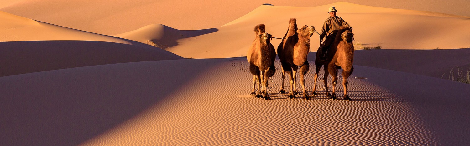 Many people picture the Mongolian Gobi as a sandy flat area with sand dunes and vast barren areas of dried mud soil. However, after they have traveled within Mongolia, visitors completely redefine their understanding of the area. The Mongolian Gobi desert supports rich variety of life and is an amazingly diverse geographical area. Some parts of the Mongolian Gobi are daunting rocky mountains covered with plants. The mountainous areas have plenty of streams, springs and wild animals, while other parts offer spectacular views of marvelous blue mountains combined with the high and seemingly endless sand dunes. Other areas feature lush green-shored streams, oases, and endless steppes stretching to the edge of the horizon. Thousands of sheep and goat herds, horses, cattle and rare Bactrian camels are seen on the prairies or among mirages in the middle of nowhere. This is yet another unexpected, delightful offering of the Mongolian Gobi desert. During this Gobi desert tour, you will stay at ger camps allowing you to enjoy 360° views of the steppes. The Gobi at nights is amazingly quiet and beautiful with countless bright stars. Spectacular sunrises and sunsets are a daily occurrence in the Gobi. Aside from the stunning natural beauty, the Mongolian countryside offers a great variety of activities such as hiking in the Eagle Valley/Yol Valley in the Gurban Saikhan National Park, climbing Khongor sand dunes, wandering through the Flaming Cliffs, riding two-humped camels, visiting nomads, ancient monasteries and the Genghis Khan equestrian statue. Those are just a sample of the wonders waiting to be discovered. Breath-taking natural scenery, unforgettable activities and experiences are waiting for you.