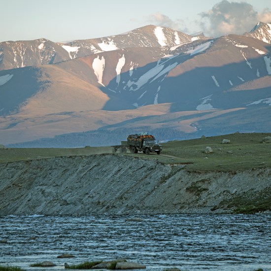 We head down hill and visit a local Tuvan family who follow Shamanism. We continue on to ascend up into the Khar Sala valley - a stunningly beautiful region of snow-capped Peaks.