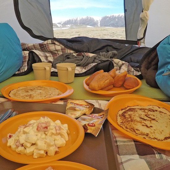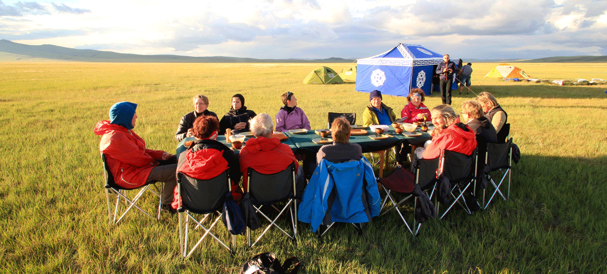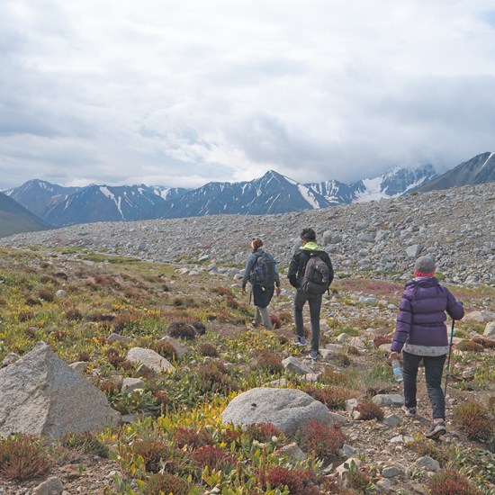 Enjoy a good breakfast, as today we take a one hour trek, then climb, up to Malchin Peak (4050 metres) - at the Mongolian-Russian border of Tavan Bogd. Malchin Peak is the lowest of the Holy Five Peaks (the highest being Khüiten Uul at 4374 metres). It's a 6-7 hour rocky climb. At the end of the day, we return to camp to relax. (B/L/D/Tent)